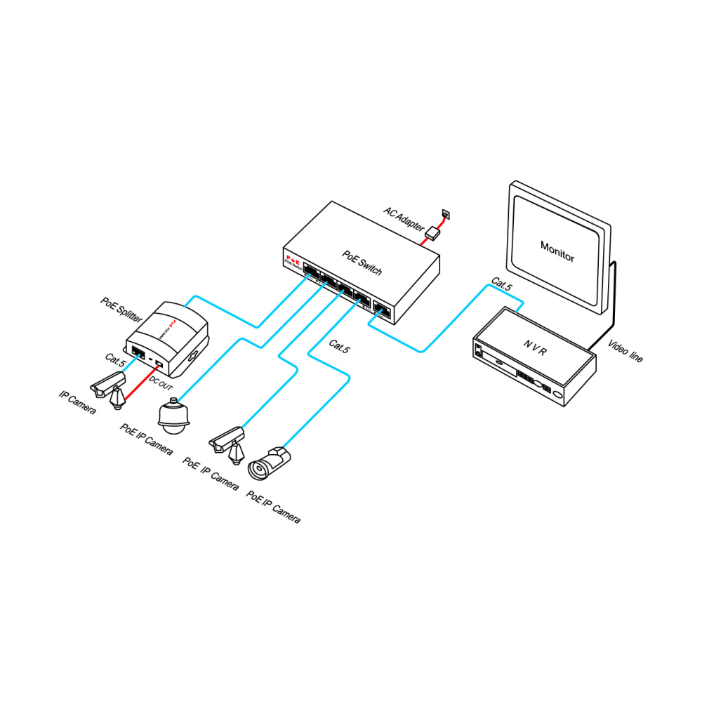 Dit betekent concreet dat een switch de enkele aansluiting van de NVR verdeelt over meerdere netwerkaansluitingen.voor POE camera's.