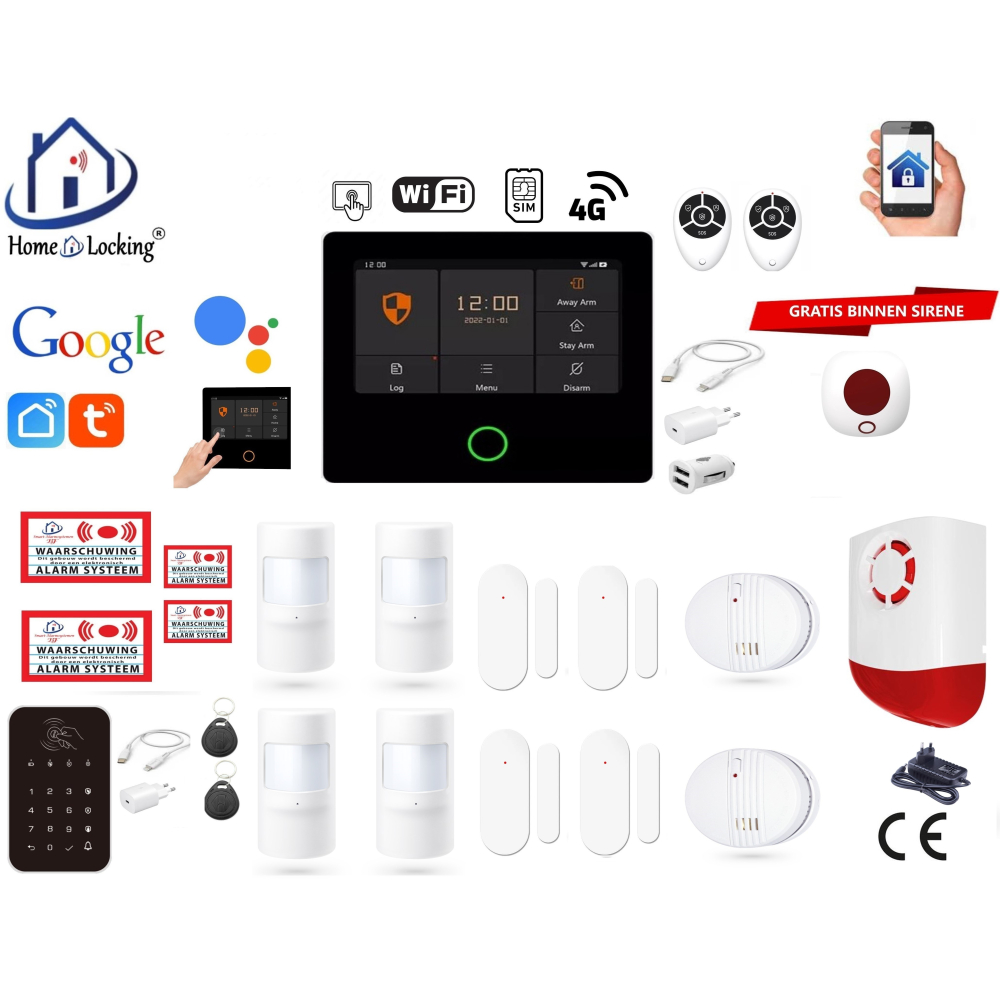 Smart Wifi,GPRS,GSM alarmsysteem ST-01A kan werken met : - Alexa. - Google. - App : Tuya smart. - App : Smart life. - GSM App : Android. - GSM App : iOS.