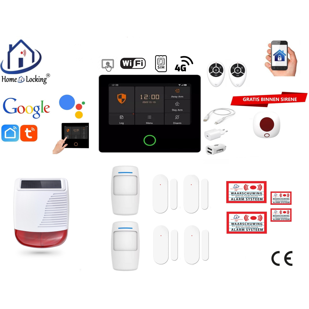 Smart Wifi,GPRS,GSM alarmsysteem ST-01A kan werken met : - Alexa. - Google. - App : Tuya smart. - App : Smart life. - GSM App : Android. - GSM App : iOS.