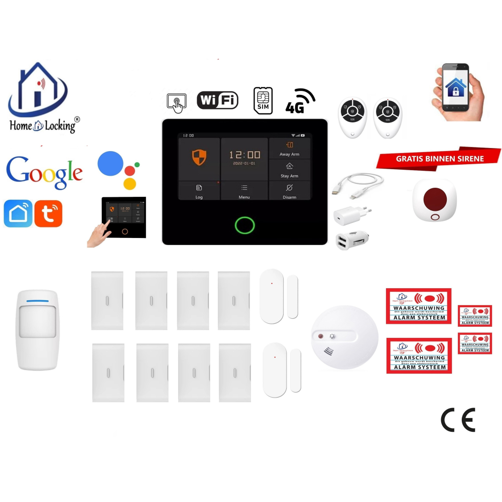 Smart Wifi,GPRS,GSM alarmsysteem ST-01A kan werken met : - Alexa. - Google. - App : Tuya smart. - App : Smart life. - GSM App : Android. - GSM App : iOS.