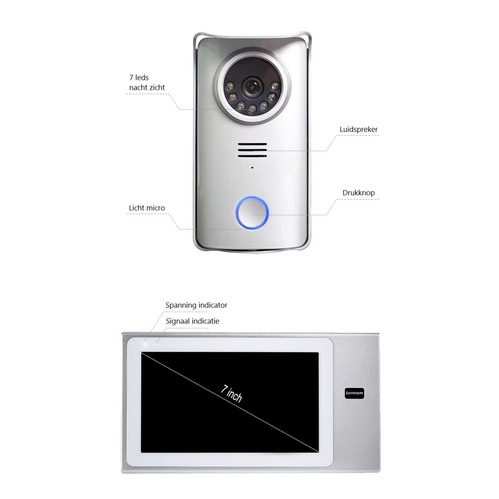 - Buiten paneel: Hangt naast je deur of poort, en neemt de rol over van een klassieke bel. Maar hij doet tegelijk veel meer,de buiten paneel bevat namelijk een cameraatje dat beeld en geluid registreert die stuurt alles door naar de binnen paneel. Dit gaat het om een geïntegreerde camera, al dan niet met een breedhoek- of panoramabeeld.