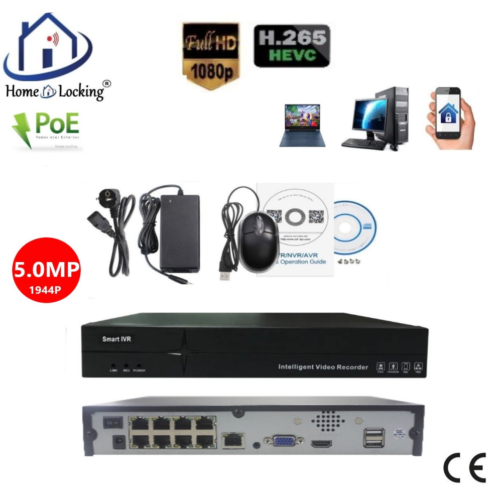 Home-Locking NVR 8CH 1944P-H265 5.0MP 8 uitgangen POE CN-524