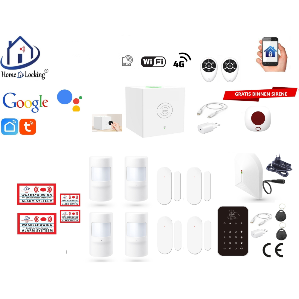 Het alartmsysteem kan ingeschakeld worden door een RFID kaart,afstandsbediening,code clavier of via de app.