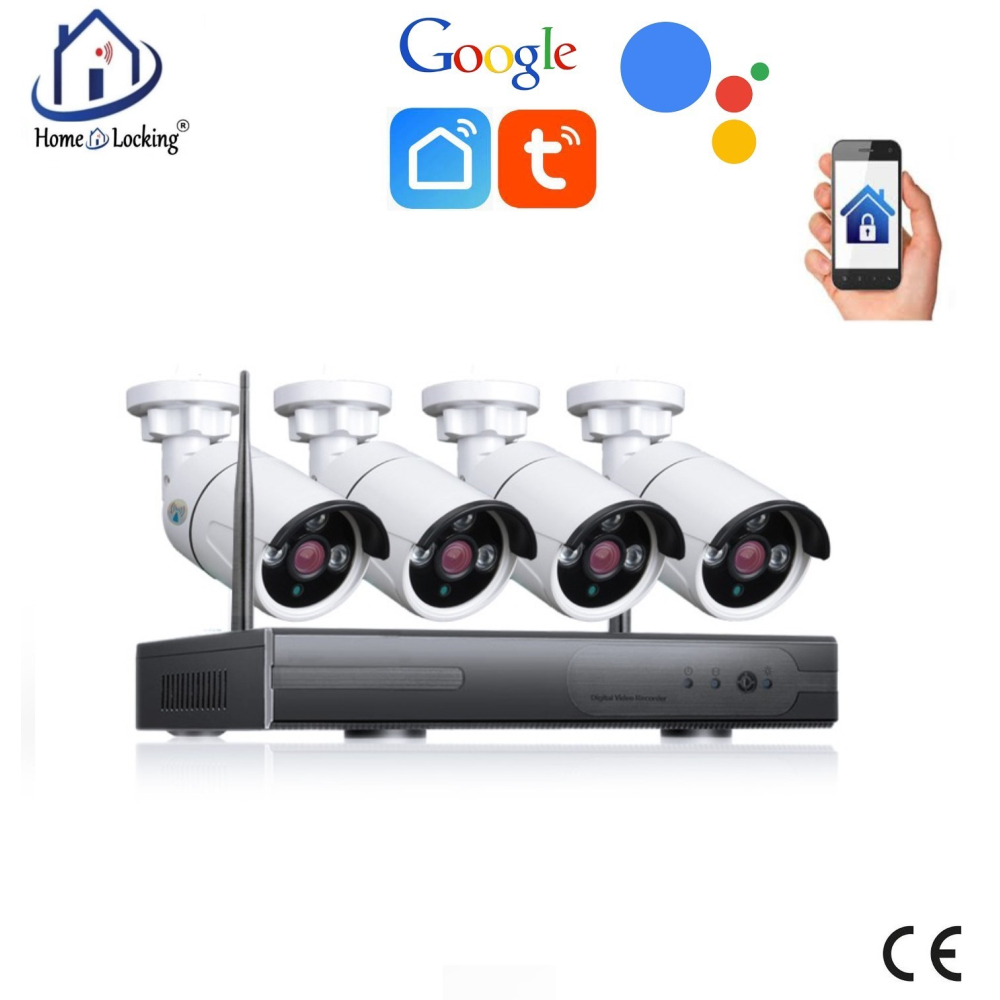 Smart WiFI set van 4 ip-camera's 2.0MP met NVR draadloos werkt met Amazon Alexa / Google Assistance.T-2056