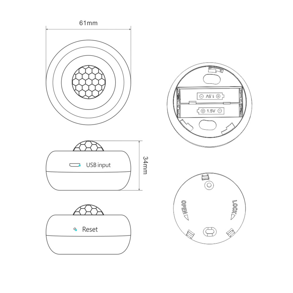 Home-locking WiFi PIR-detector 360° met bediening via Smart Life APP werkt met Alexa en Google spraaksturing. T-2021
