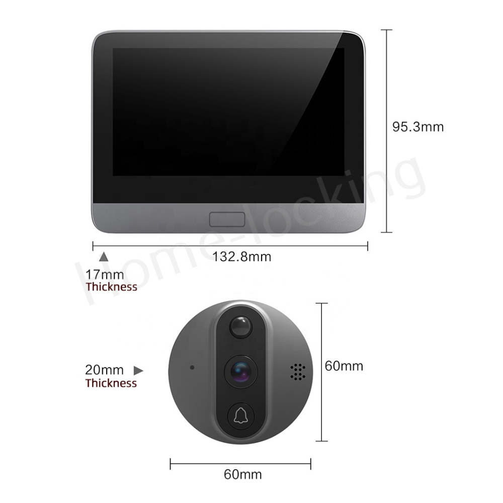 WIFI deurvideo kijkgaatje met 4.3 Inch binnen scherm met bediening via Smart Life APP werkt met Alexa en Google spraaksturing.T-2100.