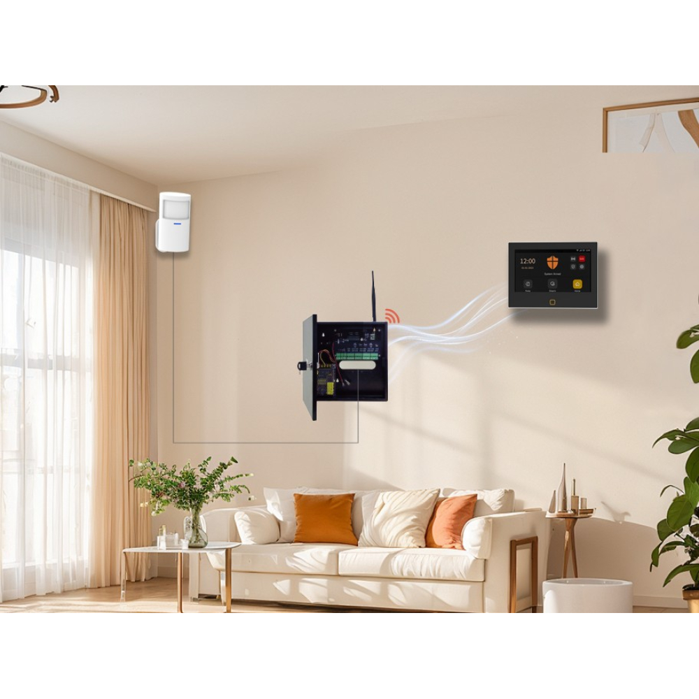 Wifi,gprs,sms alarmsysteem met 7" scherm en omzetter bedraad naar draadloos. ST01B-OMZ1